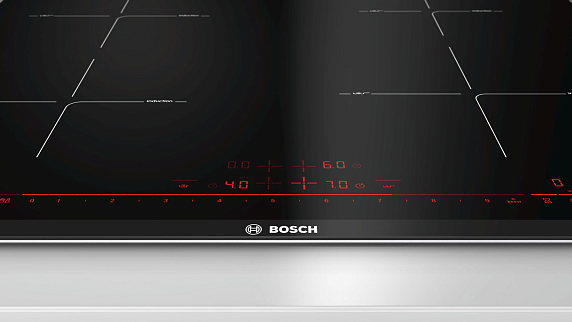 Варочная панель Bosch PIE675DC1E оснащена четырьмя индукционными конфорками с функцией быстрого нагрева и 17 ступенями мощности.