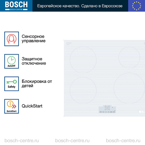 Индукционная варочная панель Bosch PUE612BB1J на 4 конфорки, шириной 59.2 см, белый