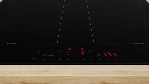 Управление реализовано по схеме DirectSelect с сенсорными органами, обеспечивающими мгновенную реакцию и интуитивную навигацию по режимам. TFT-дисплей отображает выбранные параметры, а таймер прямого отсчёта позволяет точно задать длительность приготовления и автоматически отключить зону. Доступно 17 ступеней мощности, что дает возможность тонкой регулировки нагрева от медленного тушения до интенсивного подогрева. Быстрый старт QuickStart определяет активную конфорку при соприкосновении посуды, а ReStart восстанавливает последние настройки после случайного отключения, экономя время и устраняя необходимость повторных настроек.