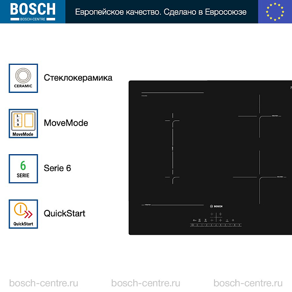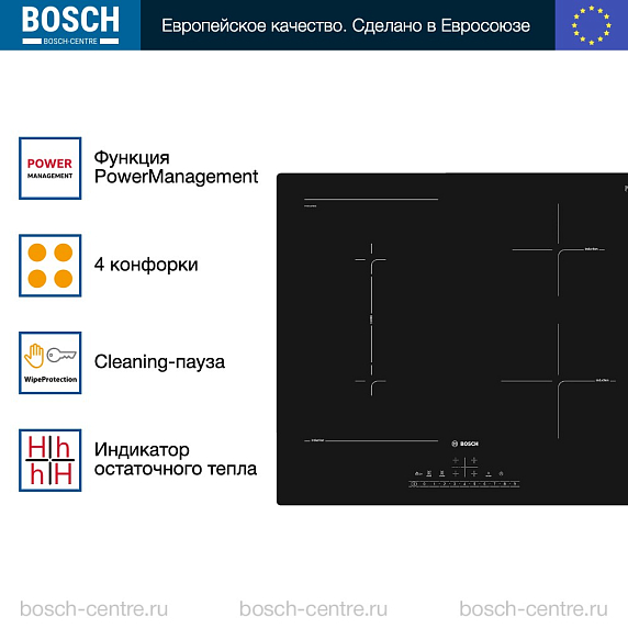 Индукционная варочная панель Bosch PVS611FB5E на 4 конфорки, шириной 59.2 см, черный