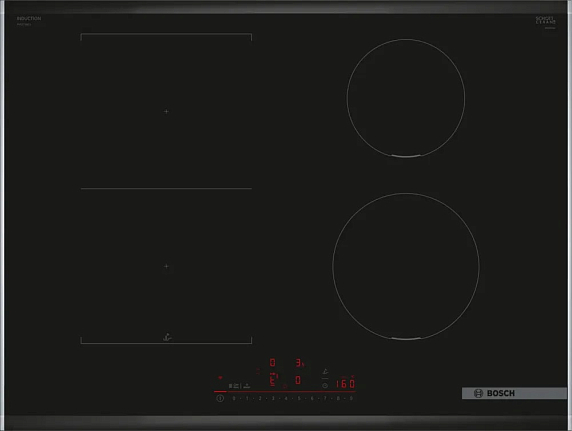 Система управления DirectSelect и сенсорные элементы управления обеспечивают простоту и удобство использования. На TFT-дисплее отображается всю необходимую информацию, а таймер прямого отсчёта с функцией отключения для каждой конфорки позволяет контролировать процесс приготовления пищи. Одной из особенностей панели Bosch PVS775HC1E является функция распознавания посуды. Это значит, что панель автоматически определяет размер и форму посуды и подстраивает под него зону нагрева. Это обеспечивает более эффективное использование энергии и равномерное распределение тепла.