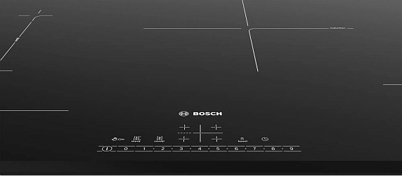 Индукционная варочная панель Bosch PVS831FB5E выполнена в черном цвете, имеет поверхность из стеклокерамики и 4 конфорки.