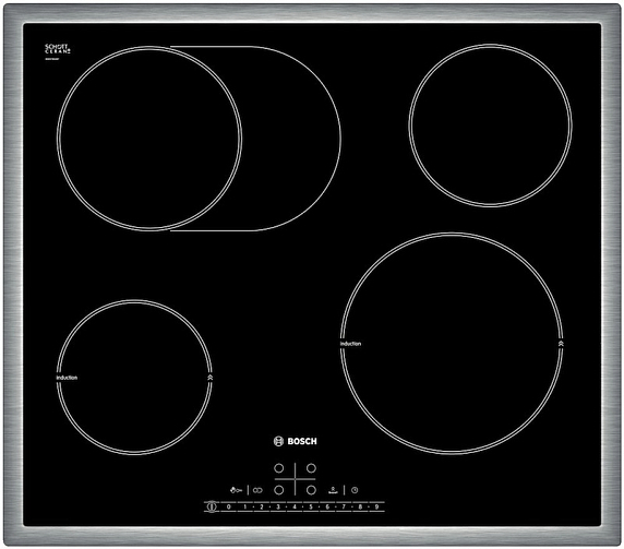 Индукционная варочная панель Bosch PIC 645F17E на 4 конфорки, шириной 58.4 см, черный