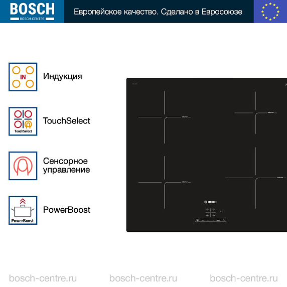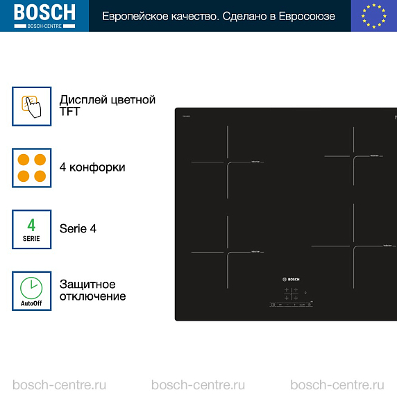Индукционная варочная панель Bosch PIE611BB1E на 4 конфорки, шириной 59.2 см, черный
