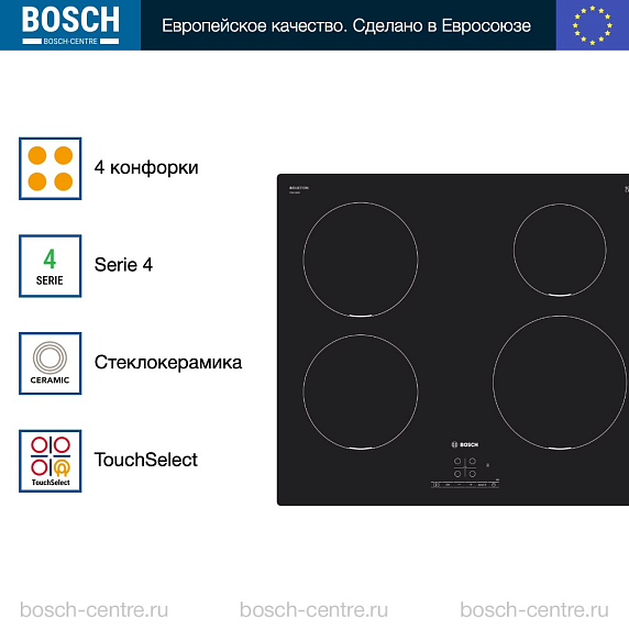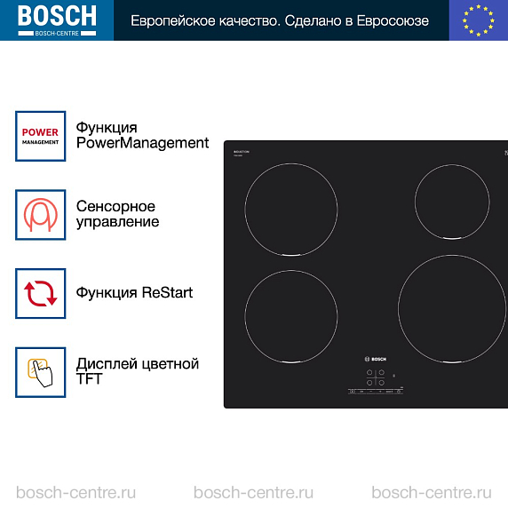 Варочная панель Bosch PIE611BB5E — это современная индукционная модель с сенсорным управлением