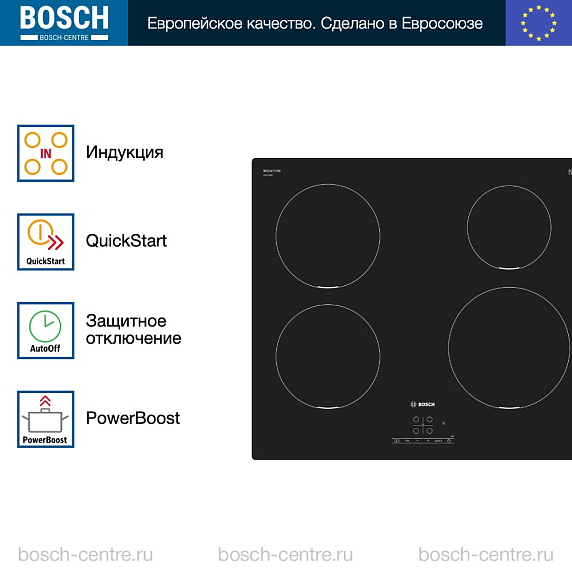 Индукционная варочная панель Bosch PIE611BB5E на 4 конфорки, шириной 59.2 см, черный