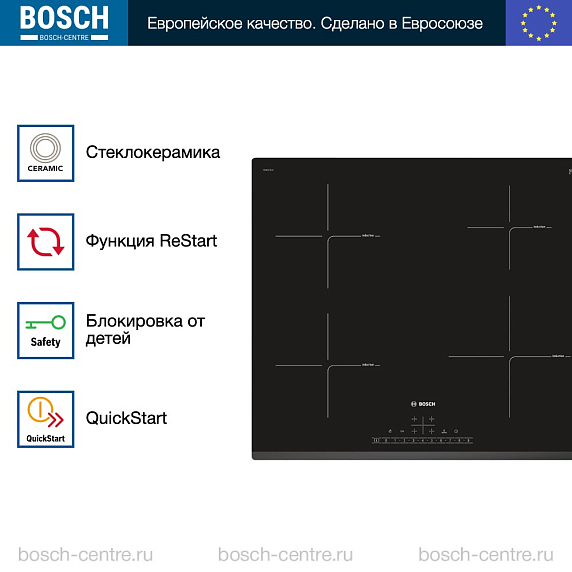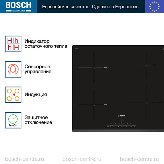 Индукционная варочная панель Bosch PIE631FB1E с 4 зонами нагрева удобна в использовании, эффективна и функциональна.