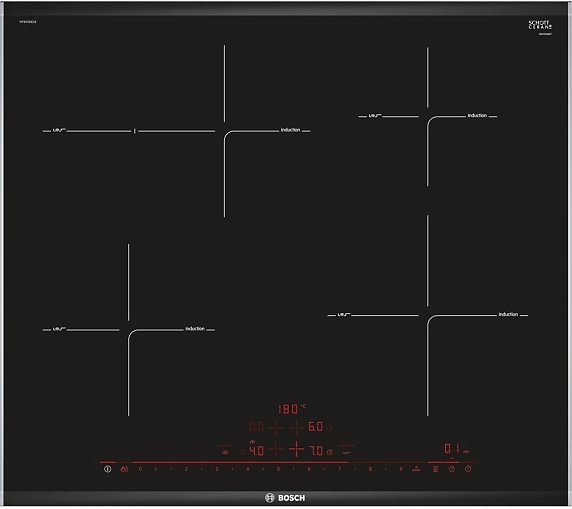 Индукционная варочная панель Bosch PIF675DE1E на 4 конфорки, шириной 60.6 см, черный