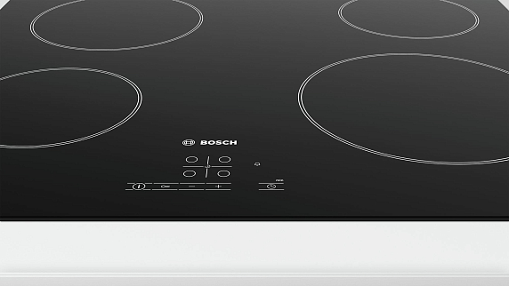 Варочная панель Bosch PKE 611F17E выполнена из стеклокерамического материала с прямым краем, без рамки. Плита имеет четыре конфорки и девять режимов регулировки мощности.