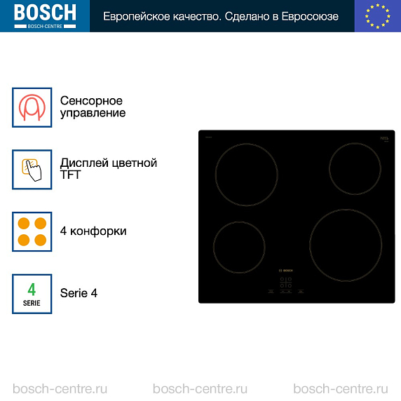 Электрическая варочная панель Bosch PKE611BA1R на 4 конфорки, шириной 59.2 см, черный