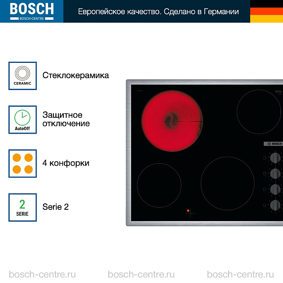 Электрическая варочная панель Bosch PKE645CA2E на 4 конфорки, шириной 58.3 см, черный