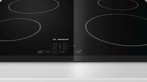 Bosch PKE651B17E — стеклокерамическая варочная панель с четырьмя зонами быстрого нагрева. Сенсорное управление позволяет управлять прибором с помощью одного прикосновения.