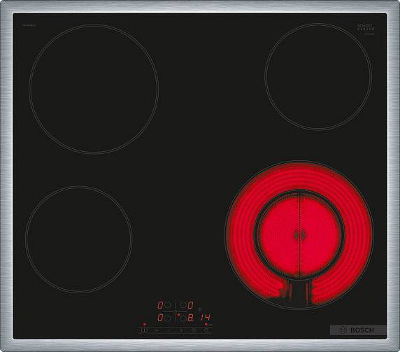 Варочная панель Bosch PKF645BB1R из серии Serie | 4 — идеальное решение для тех, кто ценит комфорт, функциональность и стиль в одном флаконе. Эта модель представляет собой электрическую Hi-Light варку, оборудованную четырьмя конфорками.
