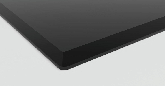 Модель, выполненна в черном цвете, отлично впишется в любой современный интерьер. Материал поверхности — стеклокерамика, что гарантирует простоту в уходе и высокую устойчивость к механическим повреждениям. Особенностью дизайна является скошенный край, который придает изящный и стильный вид. При этом такой дизайн не только красив, но и практичен — скошенный край уменьшает риск случайного контакта с горячей поверхностью.