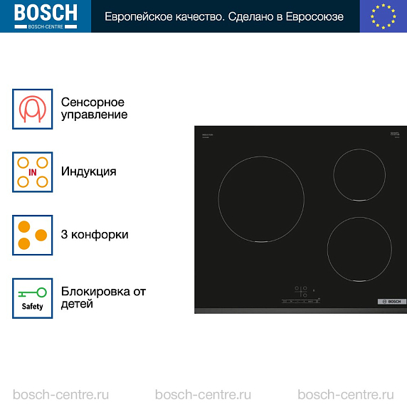 Индукционная варочная панель Bosch PUC631BB5E на 3 конфорки, шириной 59.2 см, черный