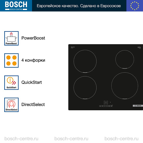 Индукционная варочная панель Bosch PUE 611 BB6E на 4 конфорки, шириной 59.2 см, черный