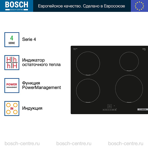 Индукционная варочная панель Bosch PUE 611 BB6E серии Serie | 4 представляет собой стандартное четырехконфорочное устройство для встраивания. Модель оснащена системой автоматического определения посуды и предлагает базовый функционал для ежедневного приготовления, сочетая доступность с практичностью.