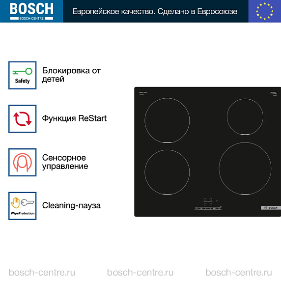 Варочная панель Bosch PUE 611 BB6E представляет собой экономичное решение для домашней кухни, сочетающее базовый функционал индукционного нагрева с надежными системами безопасности и доступностью.