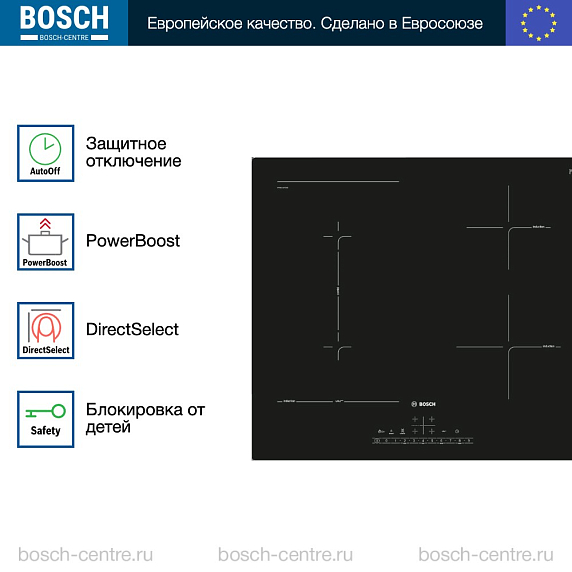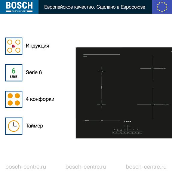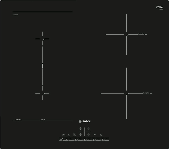 Индукционная варочная панель Bosch PVS611FC5Z на 4 конфорки, шириной 59.2 см, черный