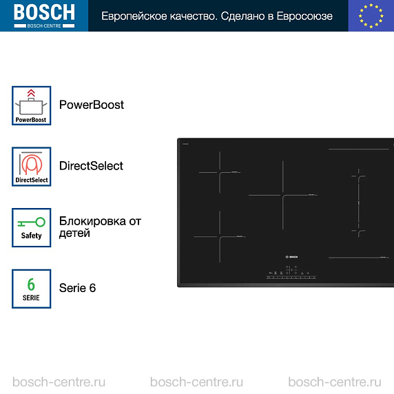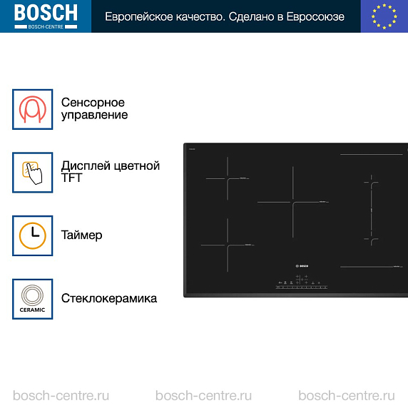 Индукционная варочная панель Bosch PVW851FB5E на 5 конфорки, шириной 80.2 см, черный