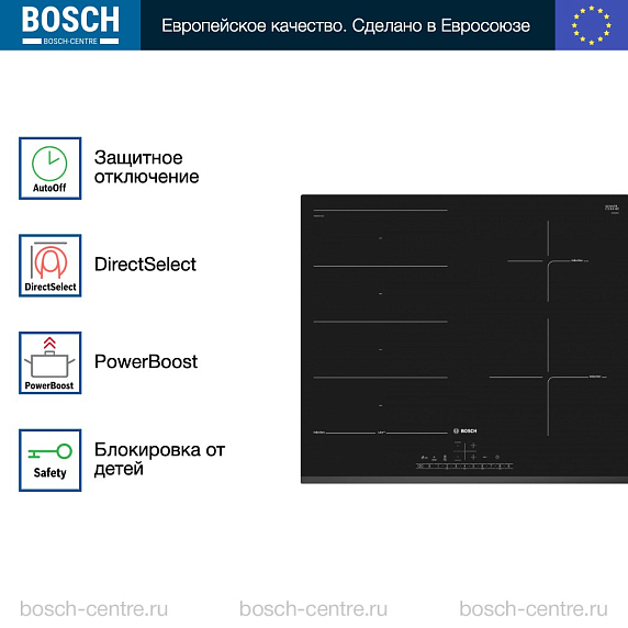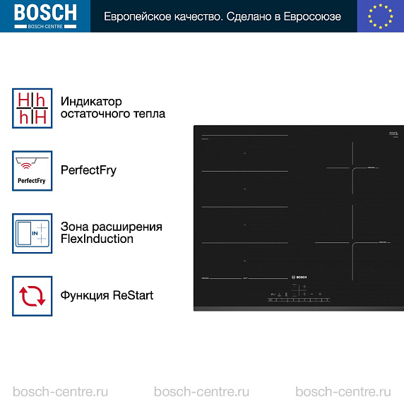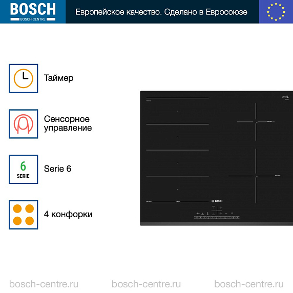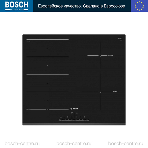 Индукционная варочная панель Bosch PXE631FC1E на 4 конфорки, шириной 59.2 см, черный