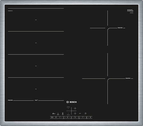 Индукционная варочная панель Bosch PXE645FC1E на 4 конфорки, шириной 58.3 см, черный