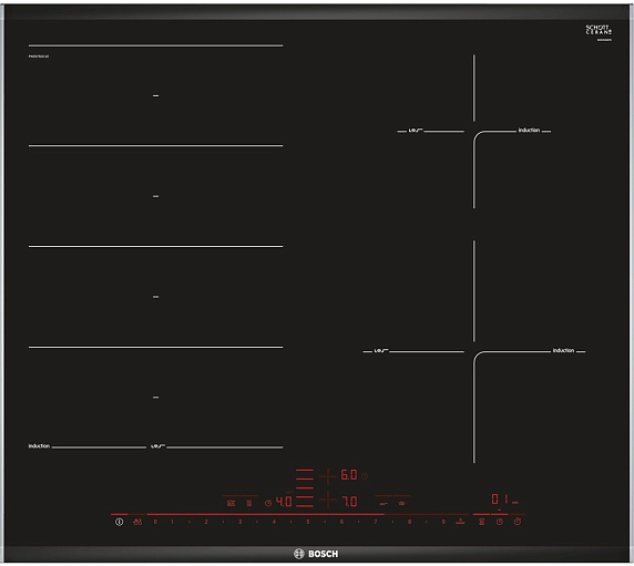 Индукционная варочная панель Bosch PXE675DC1E на 4 конфорки, шириной 60.6 см, черный