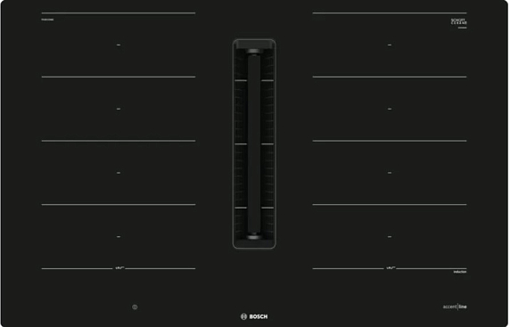 Индукционная варочная с вытяжкой Bosch PXX821D66E на 4 конфорки, шириной 79.2 см, черный