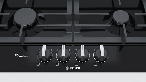 Газовая варочная панель Bosch PCP6A6B90R на 4 конфорки, шириной 58.2 см, черный