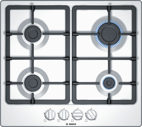 Газовая варочная панель Bosch PGP6B2B90R на 4 конфорки, шириной 58.2 см, белый