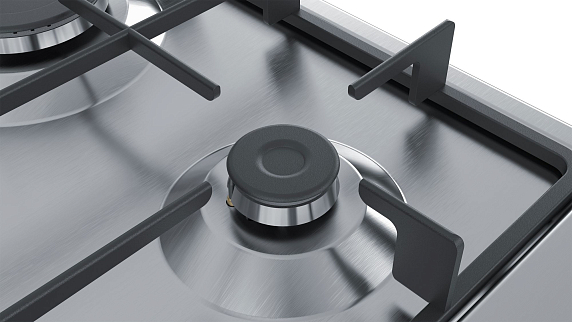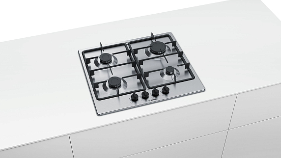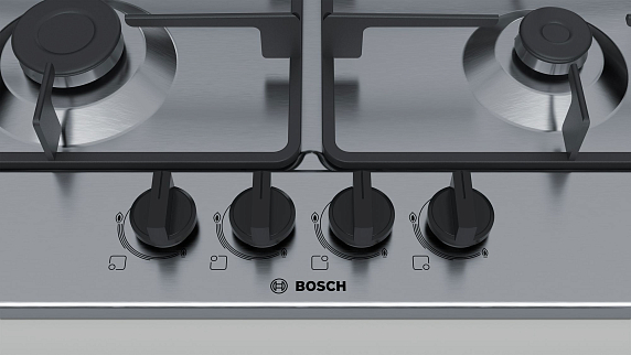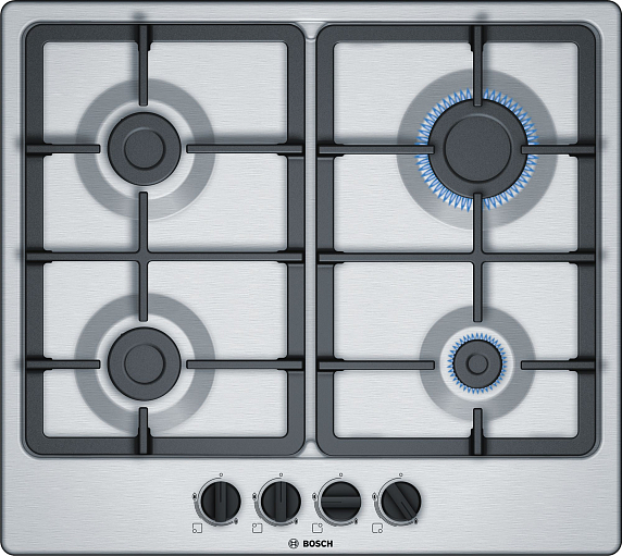 Газовая варочная панель Bosch PGP6B5B90R на 4 конфорки, шириной 58.2 см, нержавеющая сталь