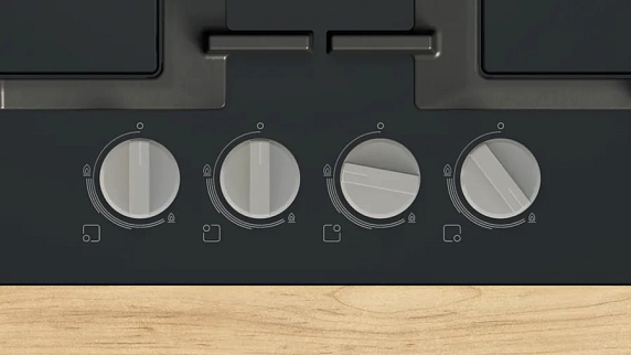 Классическое газовое управление через механические регуляторы позволяет плавно регулировать интенсивность пламени. Автоматическая система электроподжига обеспечивает удобство включения конфорок.