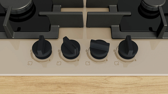 Функциональная часть сосредоточена на удобстве повседневного использования: четыре конфорки разной мощности дают широкий диапазон тепловых режимов — две средние по 1.75 кВт, одна малой мощности 1 кВт и одна мощная 3 кВт — суммарно 7.5 кВт, что обеспечивает одновременное приготовление нескольких блюд в разном темпе. Наличие регулировки пламени FlameSelect позволяет точно выбрать нужный уровень нагрева, упрощая жарку, тушение и быстрый кипячение. Для запуска горелок предусмотрен автоматический электроподжиг, который активируется поворотом соответствующих ручек; элементы управления выполнены в поворотном формате, интуитивно понятном и надёжном в повседневном обращении, а отсутствие лишней электроники делает работу простой и предсказуемой.