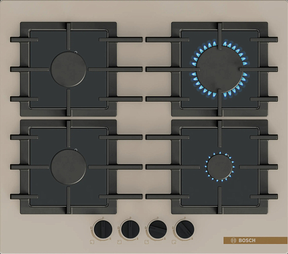 Газовая варочная панель Bosch PPP6B1J40R сочетает лаконичную эстетическую линию и продуманную конструкцию, позволяя интерьеру кухни выглядеть аккуратно и современно. Закаленное стекло в жемчужно-белом оттенке создает светлую, свежую визуальную линию, которая легко вписывается в разного рода решения: от скандинавского минимализма до монохромной классики. Поверхность тонко подчеркивает отделку столешницы благодаря низкой высоте всего 4.5 см, что обеспечивает плавный переход между рабочей зоной и мебельными элементами. Чугунные решетки смотрятся строго и солидно, они устойчивы к воздействию высоких температур и удобны при перемещении тяжёлой посуды, при этом их фактура гармонично контрастирует с гладкостью стекла, добавляя композиции выразительности и практичности.