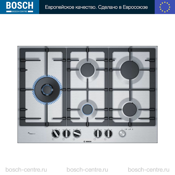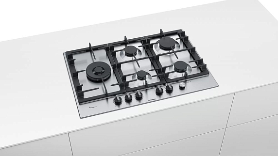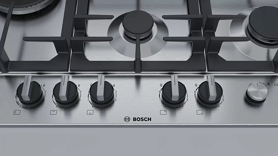 Газовая варочная поверхность Bosch PCS7A5M90 на 5 конфорки, шириной 75 см, нержавеющая сталь