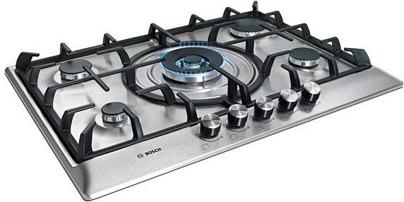 Газовая варочная панель Bosch PCQ 715 M90E на 5 конфорки, шириной 70.2 см, нержавеющая сталь