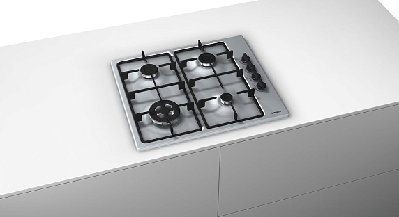 Газовая варочная панель Bosch PBH6B5B60 на 4 конфорки, шириной 58 см, нержавеющая сталь
