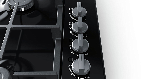 Встроенный в переключатели механизм активации электроподжига избавляет Вас от опасности обжечься, слишком близко протянув руку к конфорке. Пламя загорается простым поворотом переключателя, без использования спичек и зажигалок, что гарантирует безопасную и комфортную эксплуатацию. Данной функцией оснащена каждая конфорка газовой поверхности.