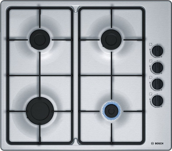 Газовая варочная панель Bosch PBP 6 B5 B 60 на 4 конфорки, шириной 58 см, нержавеющая сталь