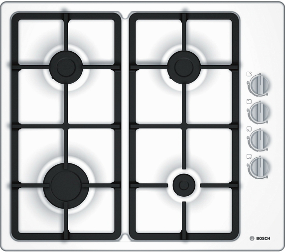 Газовая варочная панель Bosch PBP 6C2B90 на 4 конфорки, шириной 58 см, белый