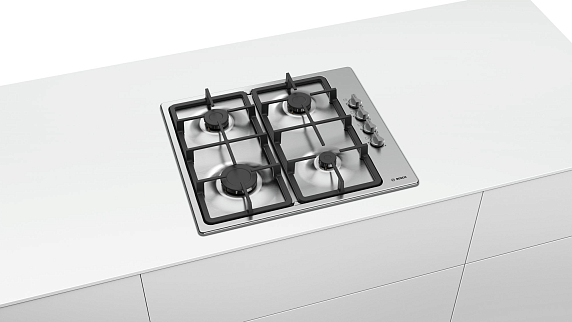 Газовая варочная панель Bosch PBP 6C5B90 на 4 конфорки, шириной 58 см, нержавеющая сталь