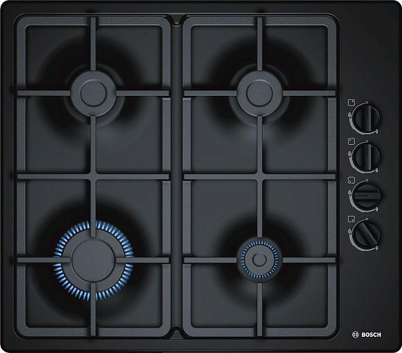 Газовая варочная панель Bosch PBP6C6B91R на 4 конфорки, шириной 58 см, черный
