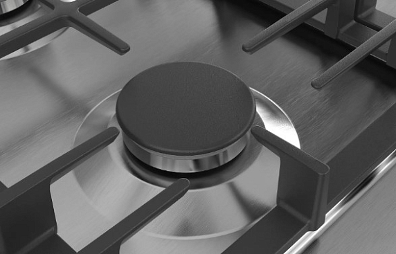Данная техника обладает функцией регулировкой пламени FlameSelect. С ее помощью вы можете точно регулировать пламя горелки по 9 ступеням мощности. Такая особенность поверхности понравится каждому члену семьи. Кроме этого, процесс приготовления блюд станет еще проще. Теперь вы сможете использовать посуду любого диаметра, в этом помогут 4 мощные конфорки. Мощность одной конфорки 1 кВт, мощность двух 1,75 кВт и последней 3,5 кВт. Одна из которых имеет конструкцию «Двойная корона» и оборудована подставкой под вок-сковородки. Эта экспресс-конфорка она имеет два кольца пламени и предназначена для наиболее интенсивного нагревания. С помощью нее вы сможете создать атмосферу ресторана на домашней кухне и готовить блюда азиатской кухни в специальных сковородах, использовать казан и другую посуду с толстыми стенками.