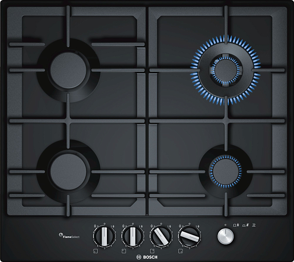 Газовая варочная панель Bosch PCH6A6M90R на 4 конфорки, шириной 58.2 см, черный
