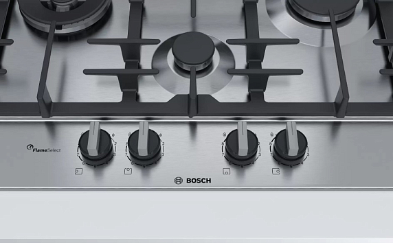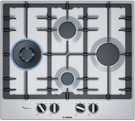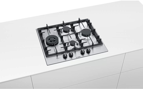 Газовая варочная панель Bosch PCI6A5B90R на 4 конфорки, шириной 58.2 см, нержавеющая сталь