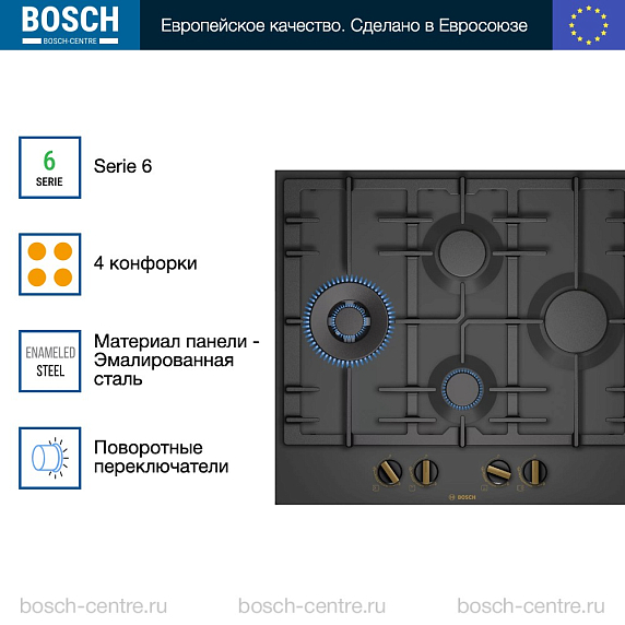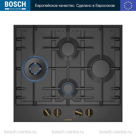 Газовая варочная панель Bosch PCI6B3B90R на 4 конфорки, шириной 58.2 см, черный