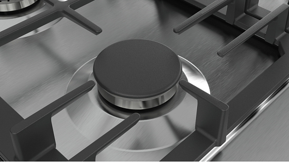 Оборудована 9 ступенчатой системой регулировки пламени FlameSelect и термоэлектрической защитой от утечки газа. Электроподжиг позволяет быстро зажечь нужную конфорку. Составная чугунная решетка легко снимается для мытья.