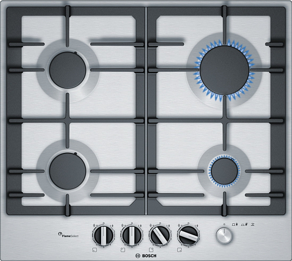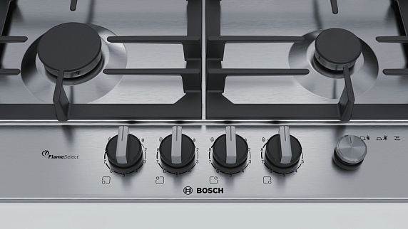 Газовая варочная панель Bosch PCP6A5M90 на 4 конфорки, шириной 58.2 см, нержавеющая сталь