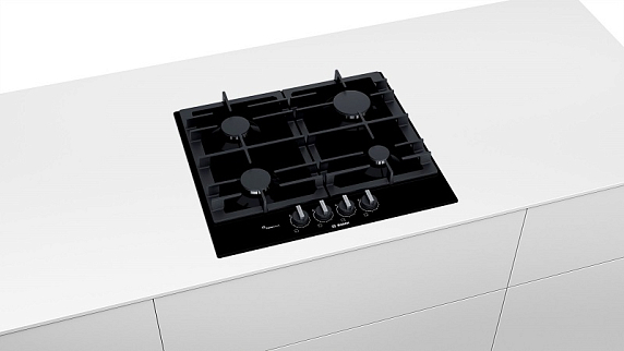 Газовая варочная панель Bosch PCP6A6B95R на 4 конфорки, шириной 58.2 см, черный