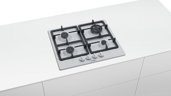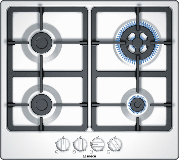 Газовая варочная панель Bosch PGH6B2B90R на 4 конфорки, шириной 58.2 см, белый